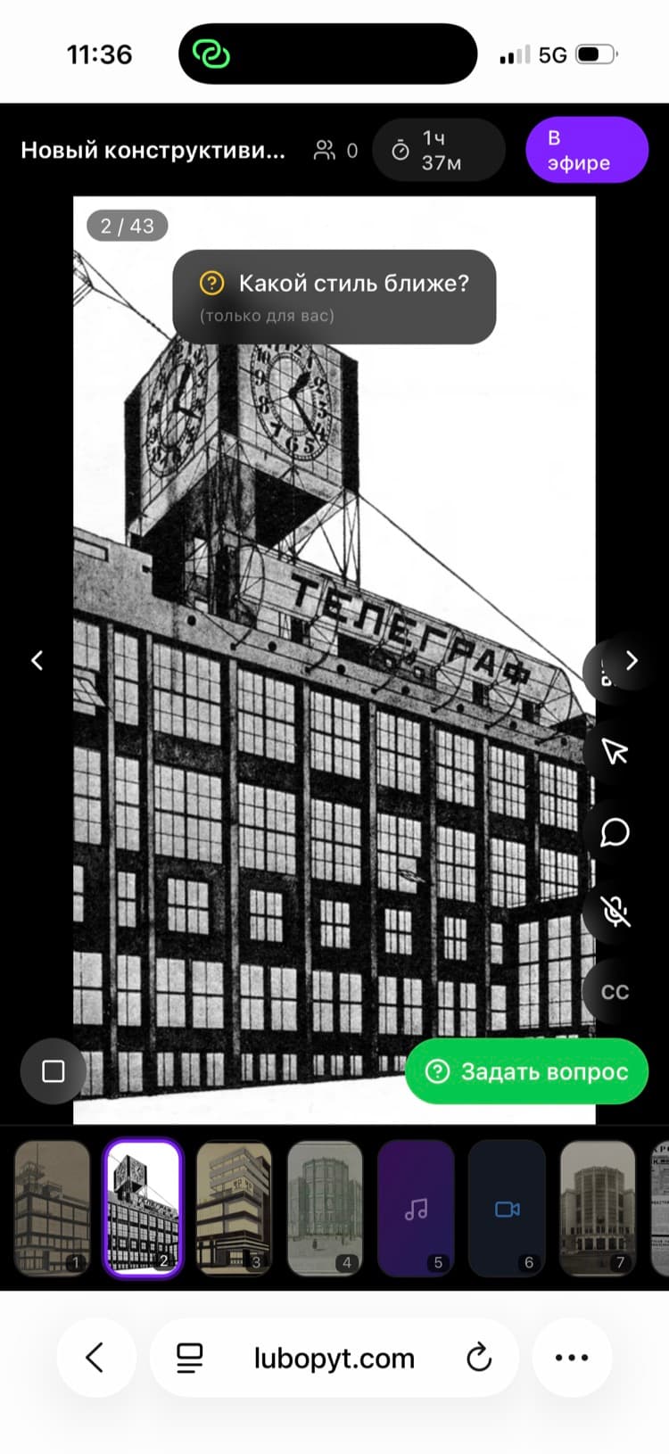 Листайте слайды — они появляются на экранах гостей. Показывайте детали, задавайте вопросы, наблюдайте за реакцией.